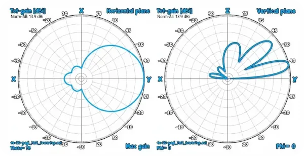 Shows where RF energy goes (main lobe, sidelobes, nulls). Includes takeoff angle (critical for HF skywave) and 3D vs. 2D views. A high-gain antenna concentrates power in one direction; a low-gain one spreads it more evenly.