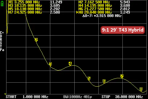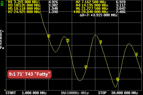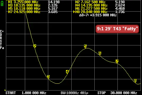 The goal is to get as many bands as possible closest to 3:1 SWR to be tunable with an internal rig tuner.