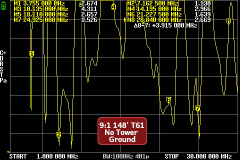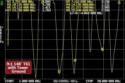 Counterpoise wire was ~50’ 18AWG wire. It was grounded to the tower and left separate (not grounded) for these readings.