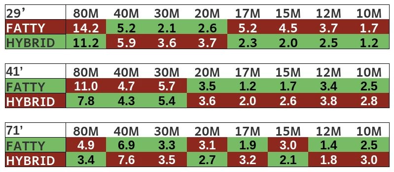 Dispite the disadvantage, the Fatty actually came out on top for lower SWR values, though it’s a rather mixed bag.