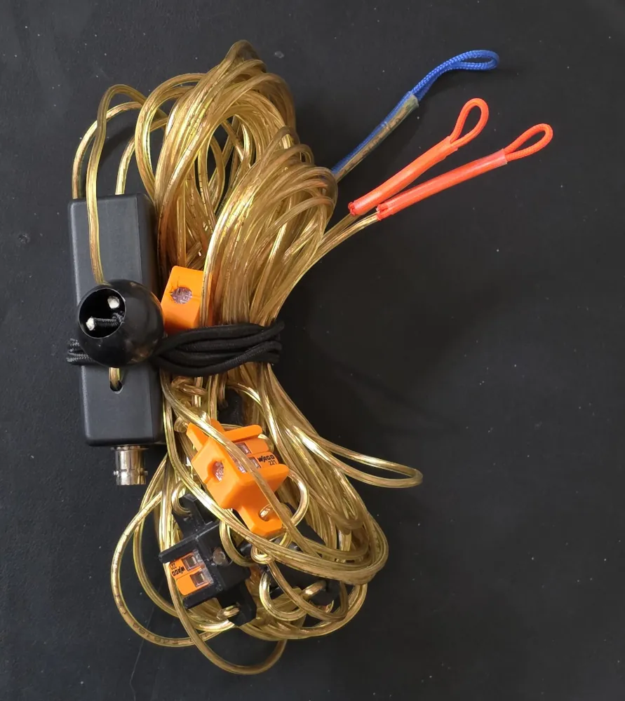 I added some hanging loops with 95 paracord and heat shrink. This gives a convenient way to support the vertical and the radials when deployed. I used blue for the vertical and orange for the radials, just as a way to instantly see which wire goes where.